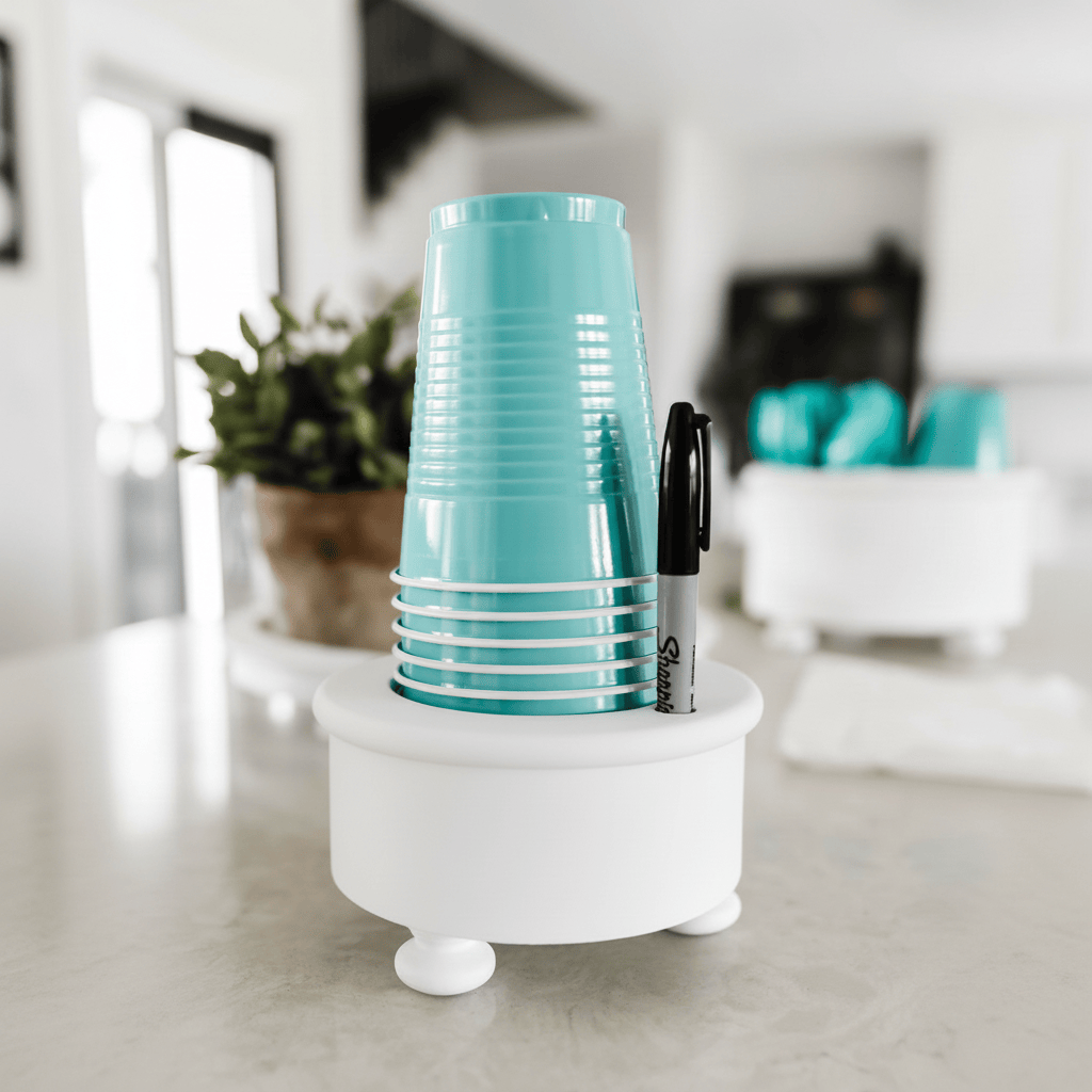 Say goodbye to lost Sharpies and wasted cups... this cup holder keeps your party organized, beautiful and easy to find. And keeps you from stressing over extra clean up, extra waste, and begging your guests to "pleeeease write their name on the cup!"
