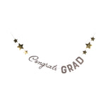Celebrate your graduate in style with this complete graduation party set! This USA-designed double-banner package features elegant black cursive "Congrats" with bold "GRAD" and stars, plus a separate garland of 9 classic black graduation caps with shimmering gold tassels. Two coordinating banners in one set create the perfect backdrop for honoring your special graduate's achievement.