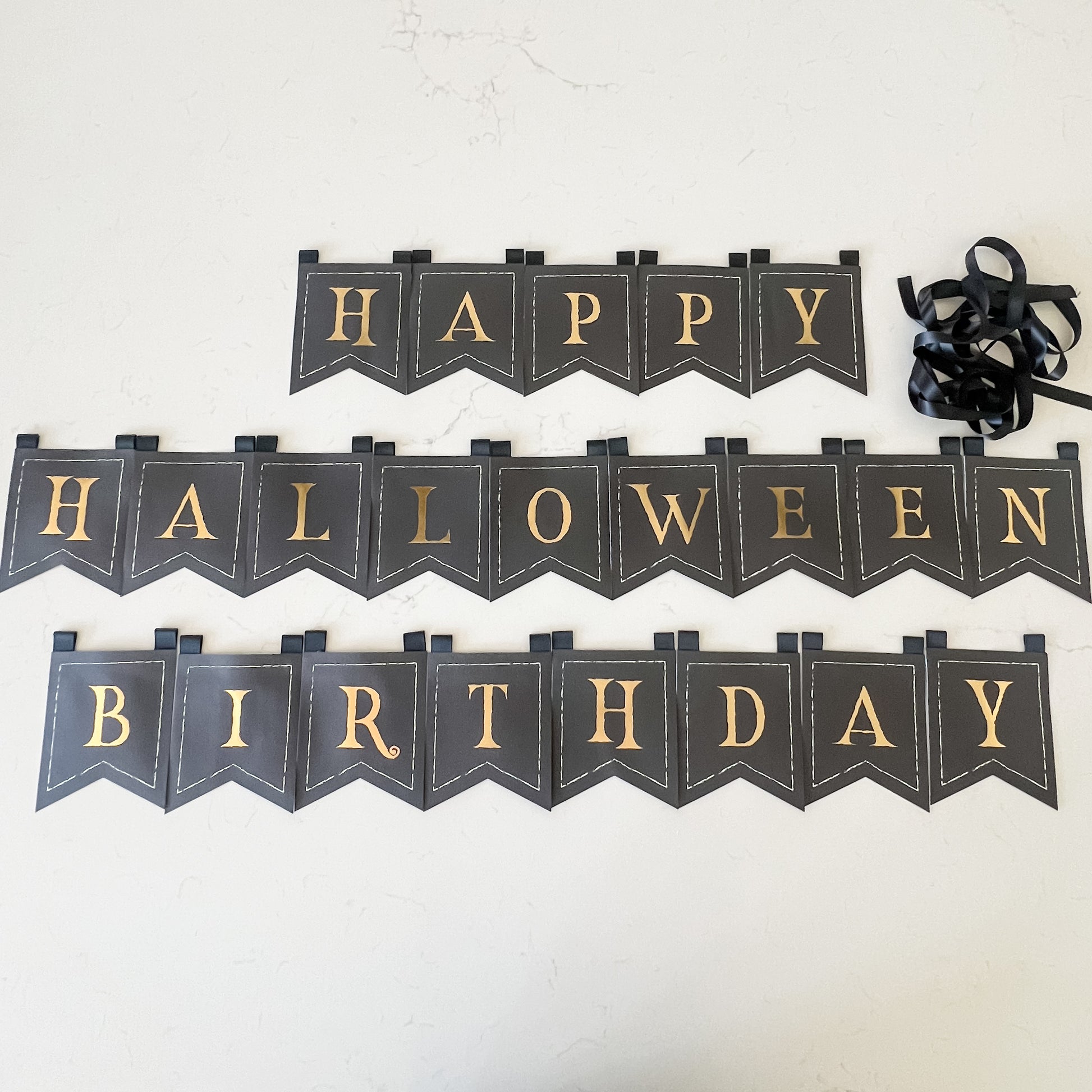 • double sided banner reads Happy Halloween & Happy Birthday