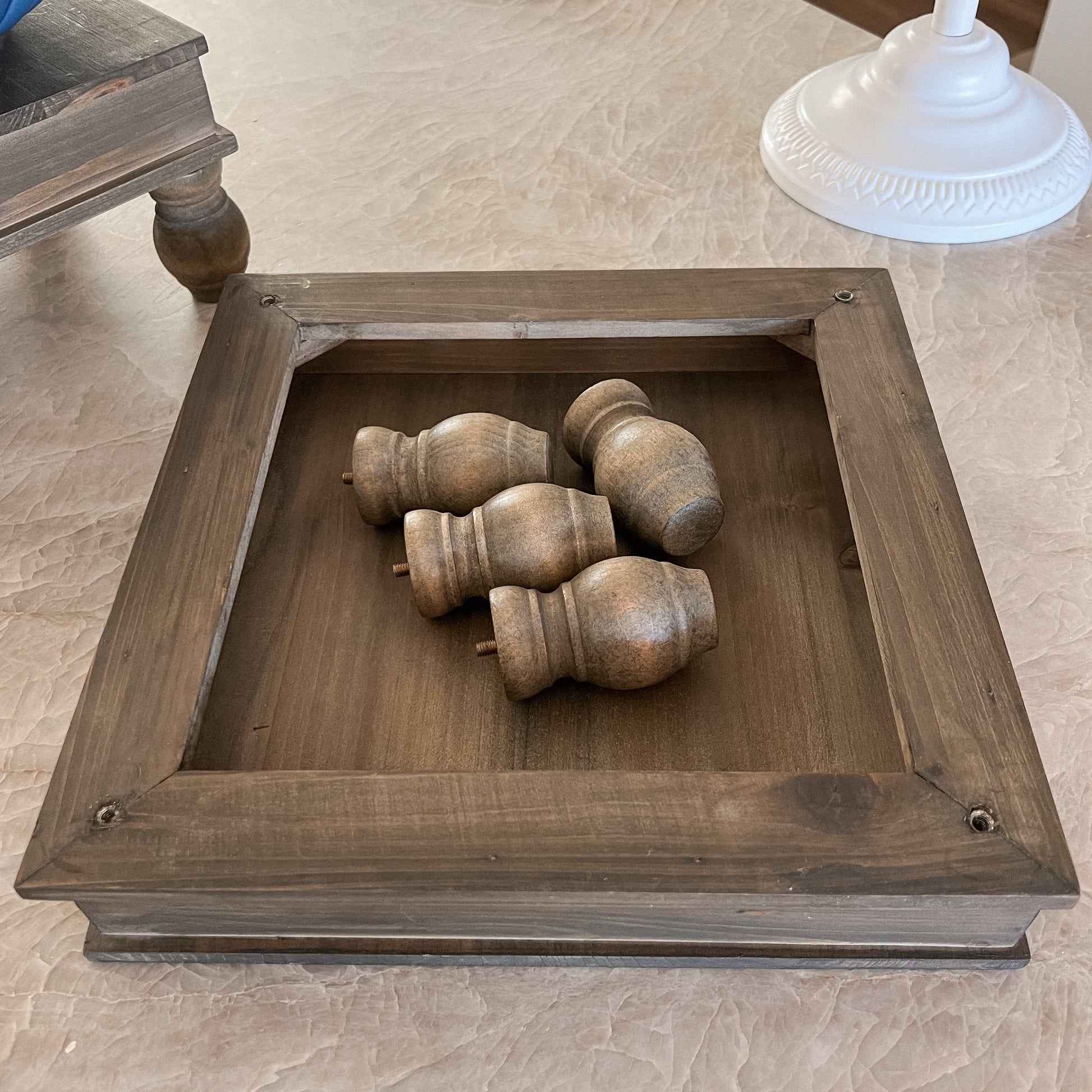 Each set includes two beautifully rustic stained wooden servers with carved detailing and metal feet—elevated in every way.